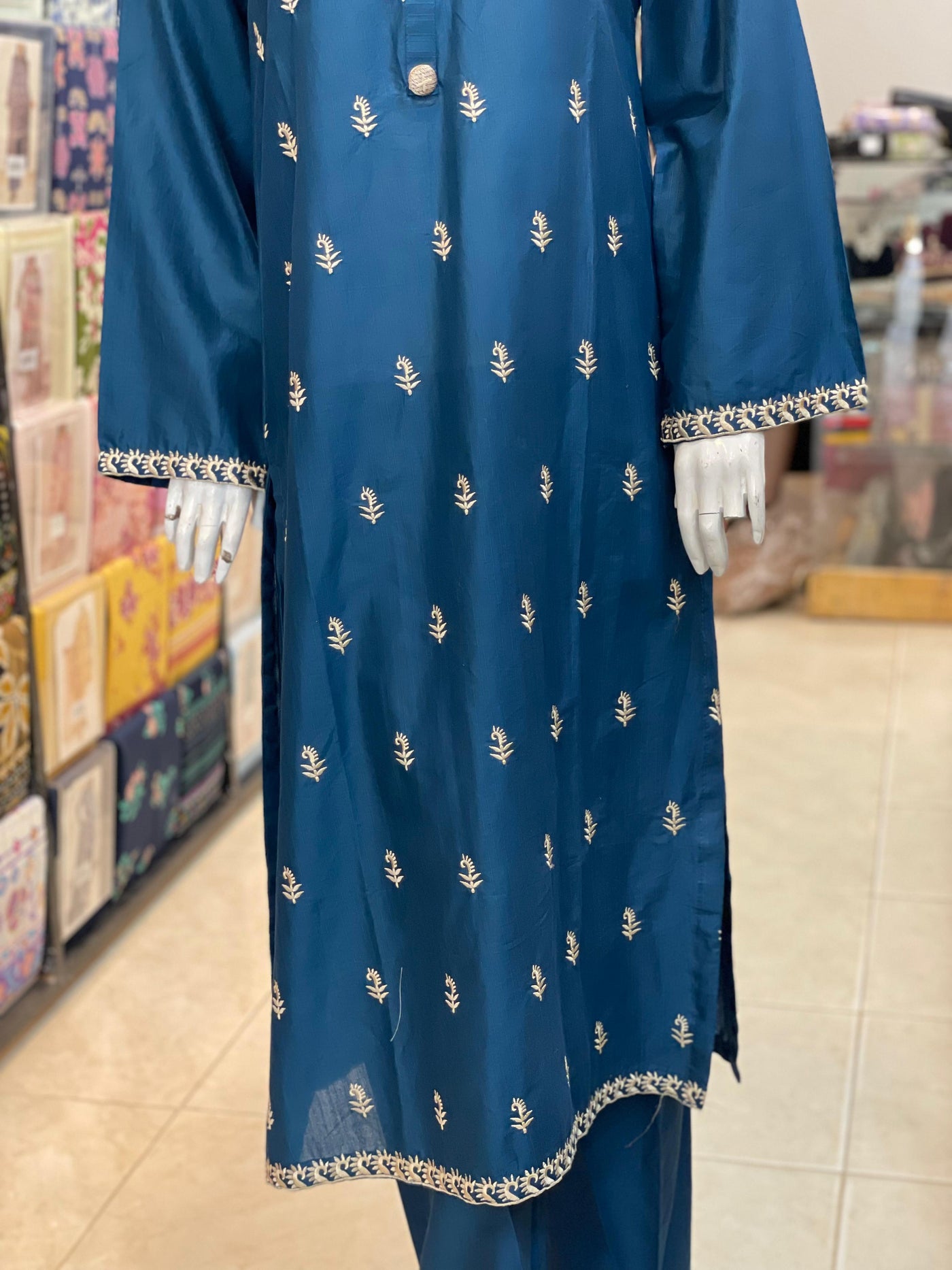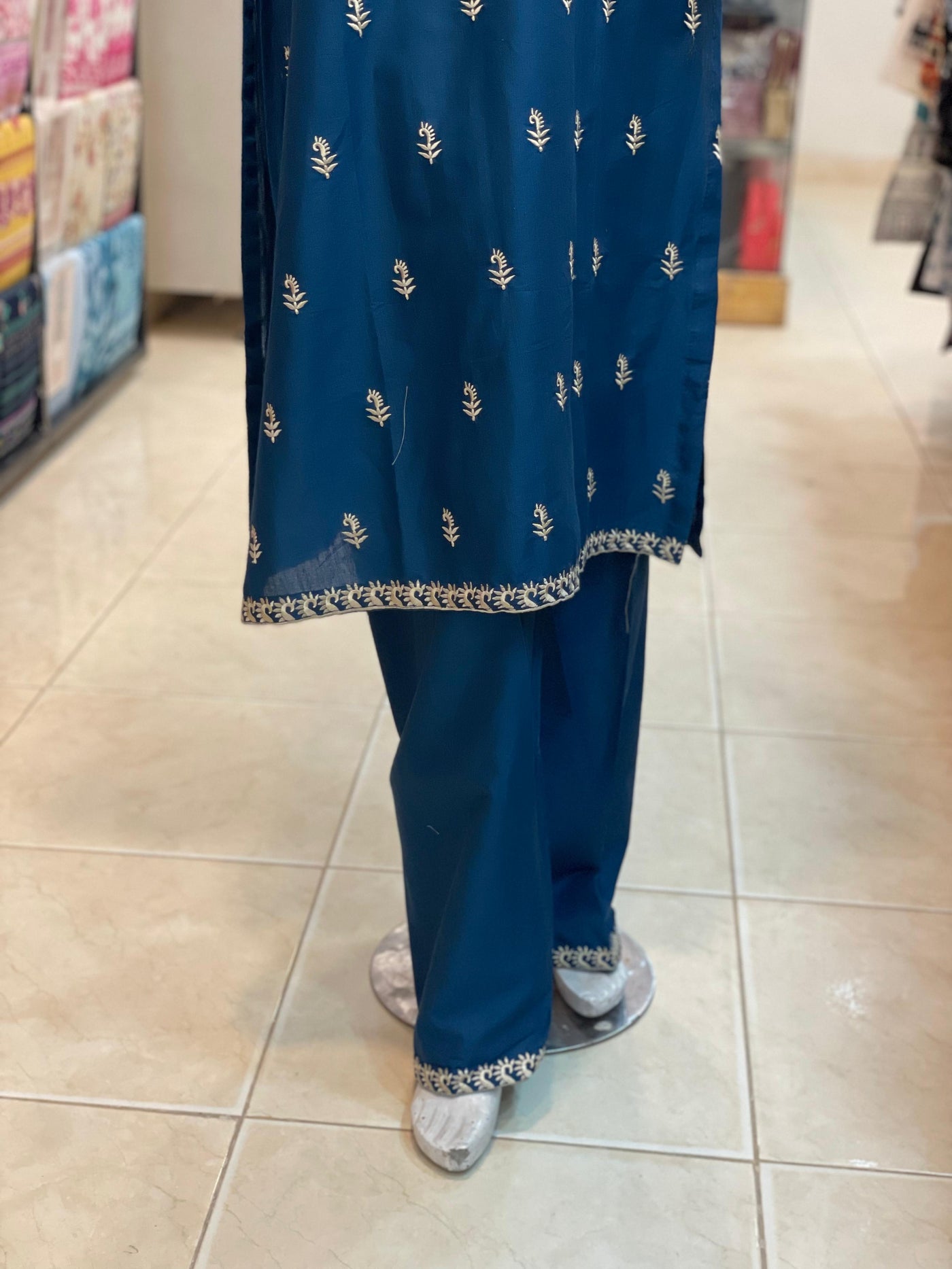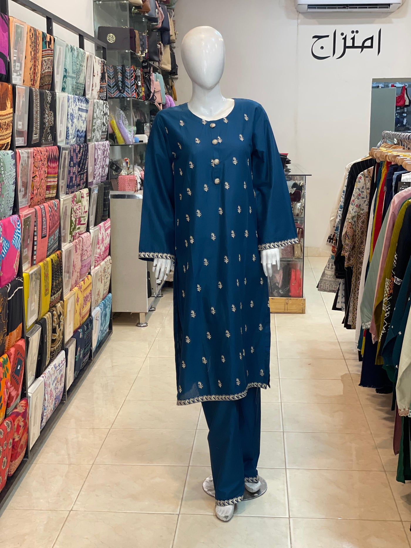 This 2-piece stitched lawn suit features an intricately embroidered shirt paired with a plain trouser, crafted from premium stuff lawn fabric for optimal comfort and breathability. With a length of 44-45 inches, it ensures a flattering fit. Available in a variety of colors, this suit blends traditional embroidery with contemporary style, priced at 3000/-. Perfect for those seeking a sophisticated and comfortable outfit for warm weather.